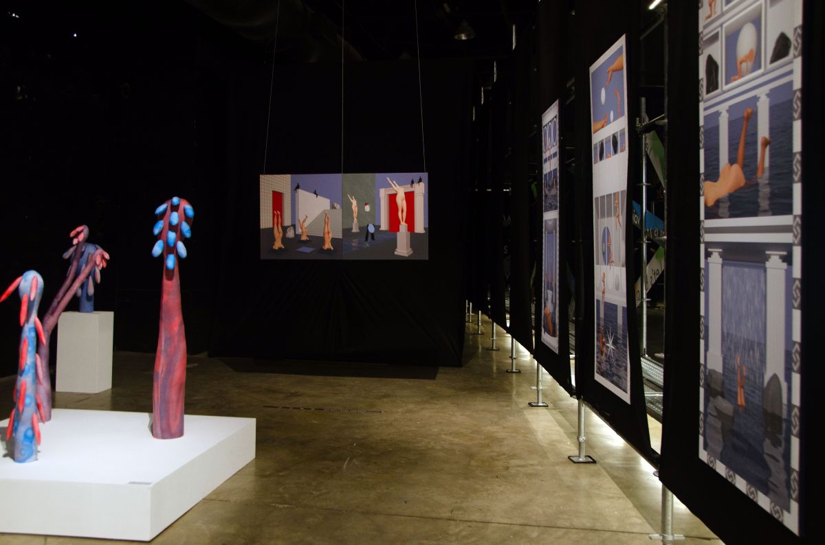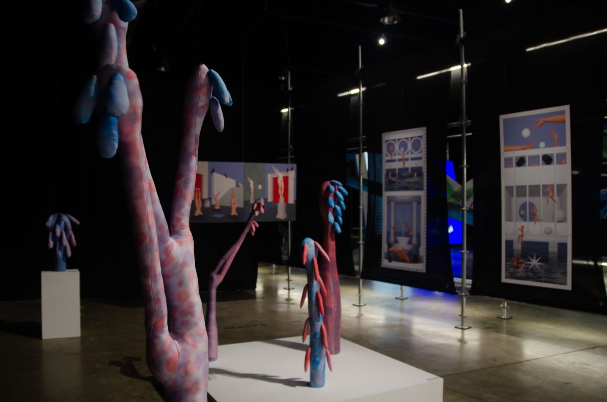 The two artists collaborate through dialogue to develop a new series of two- and three-dimensional works. Hala Tawil continues her exploration of the female body and its relationship to space, layering analog and digital techniques to reflect on distance, intimacy, and the longing for connection. Erika Emerén, meanwhile, creates sculptural textile forms that tremble delicately between plant and animal, revealing fragility within structures of repetition. Both artists share a fascination with figuration and the human body, yet express it through distinct visual languages.