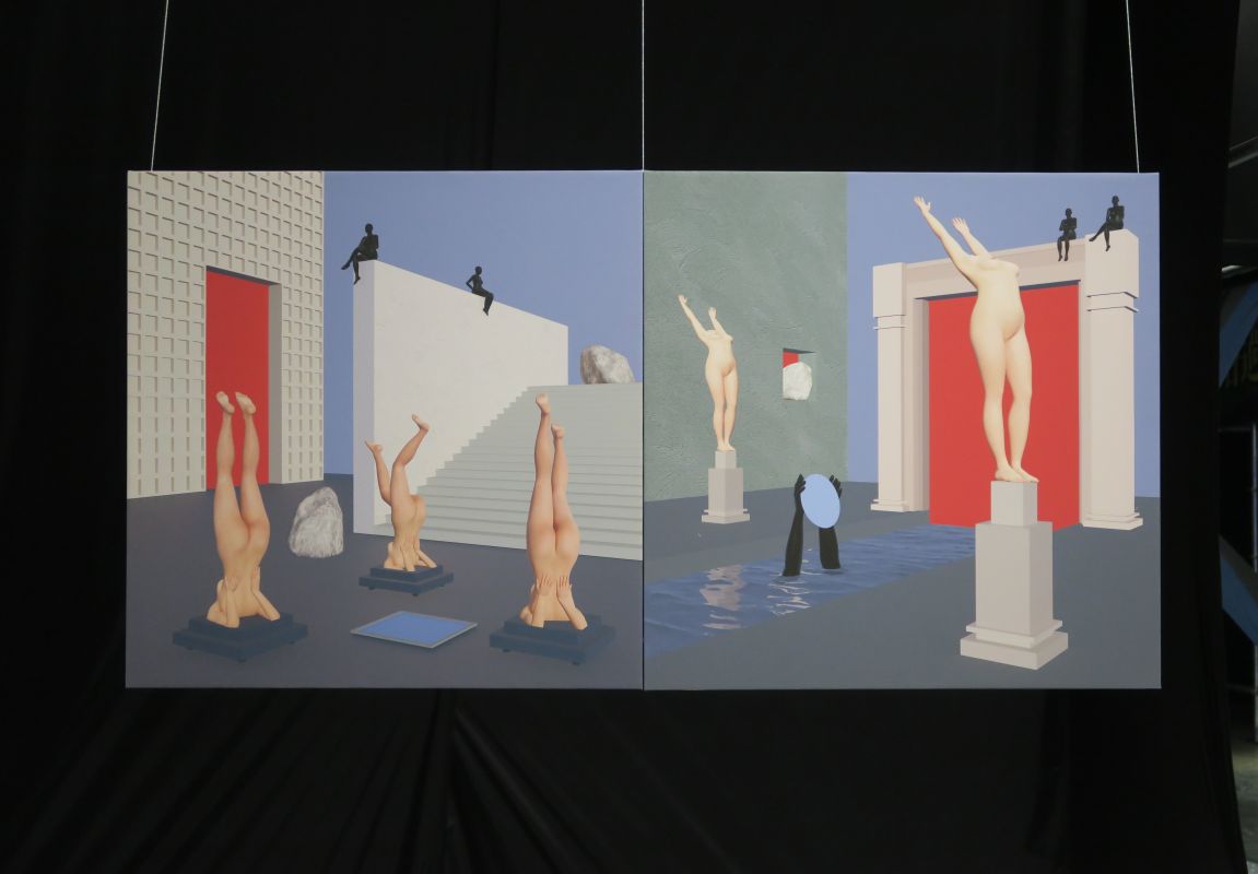 In the three large-scale pieces, I seek to capture the tension between fear and release. The body balances cautiously on the water’s surface, then dives, falls, or floats — suggesting a presence beyond the human, something almost divine.