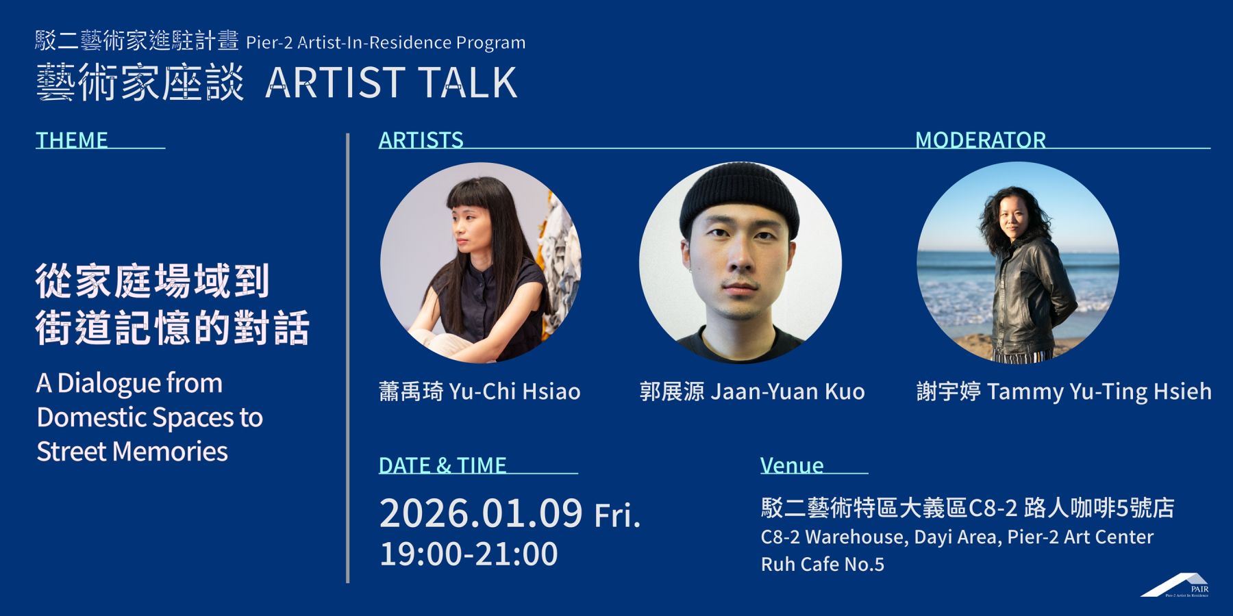 This talk will be moderated by curator Tammy Yu-Ting Hsieh, and will feature a conversation with artists Hsiao Yu-Chi and Kuo Jaan-Yuan. Yu-Chi's works function as emotional spatiotemporal vessels, delicately layering deep connections between herself, her mother, her family, and the surrounding environment. Jaan-Yuan, on the other hand, employs sculpture as a mode of translation, approaching space from a feminine perspective to explore the survival strategies individuals enact within spatial contexts.