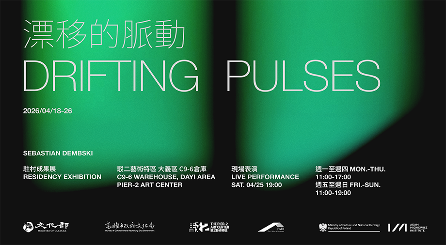 《Drifting Pulses》由孫漢曄(Cugagang Pacekelje)製作的四支排灣族雙管鼻笛(lalingedan)展開,每支鼻笛各自搭配一個揚聲器,將其聲音延伸至空間之中,如同儀式般的回響。聲音的脈動在鼻笛與其被放大的反射之間漂移,形成一個不斷變化的共振場域。最終呈現一個由空氣、重複以及心理聲學交互作用所形塑的聆聽空間。